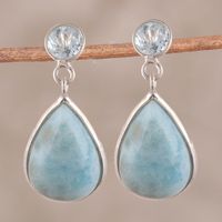 Dazzling Larimar and Blue Topaz Dangle Earrings from India 'Alluring Sky' Item ID: 2671618643