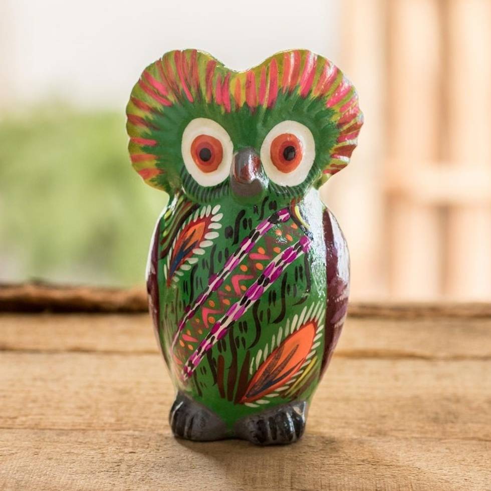 Decorated Green Ceramic Owl Figure from Guatemala 'Rainforest Owl' Item ID: 2671772110