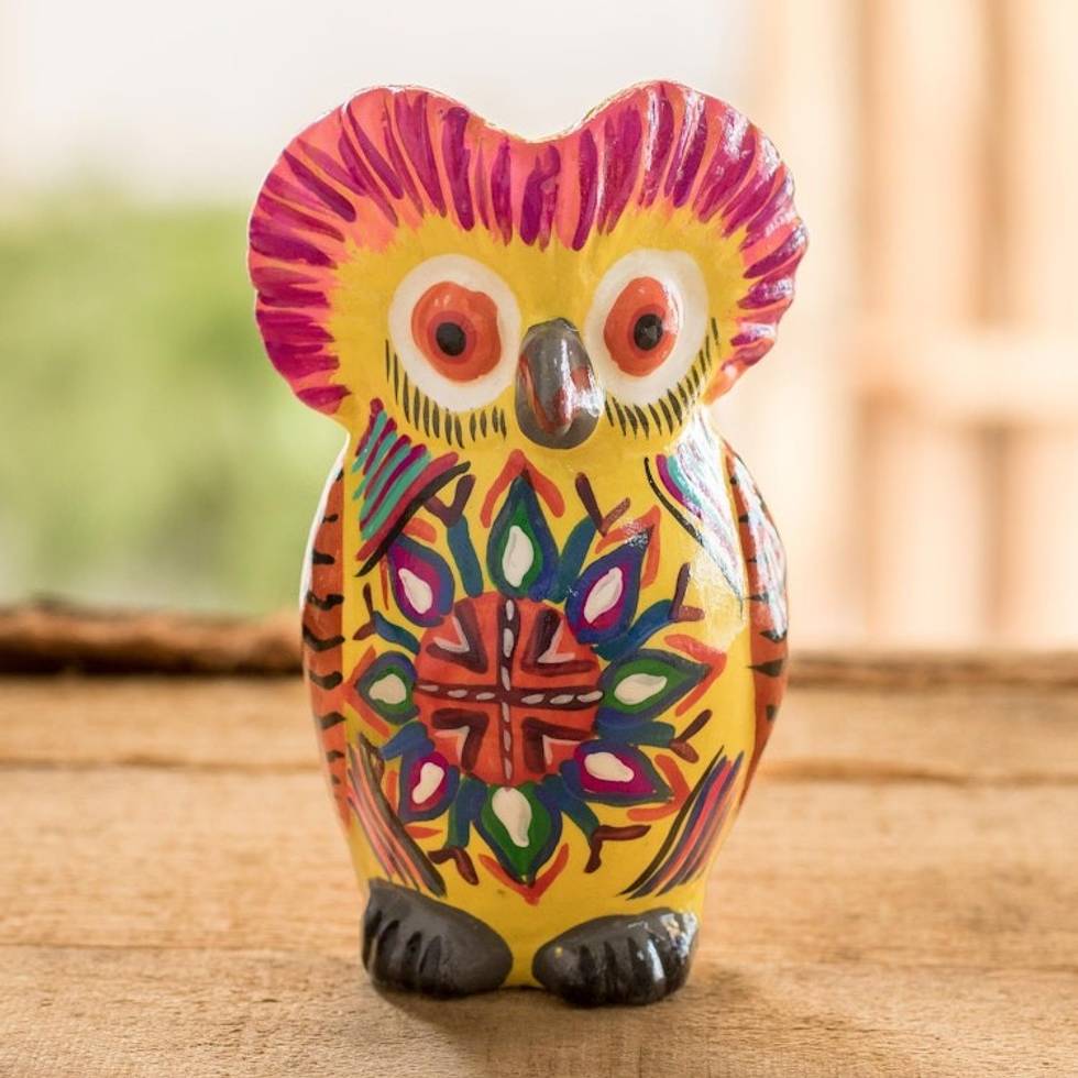 Decorated Yellow Ceramic Owl Figure with Geometric Design 'Sunrise Owl' Item ID: 2669923704
