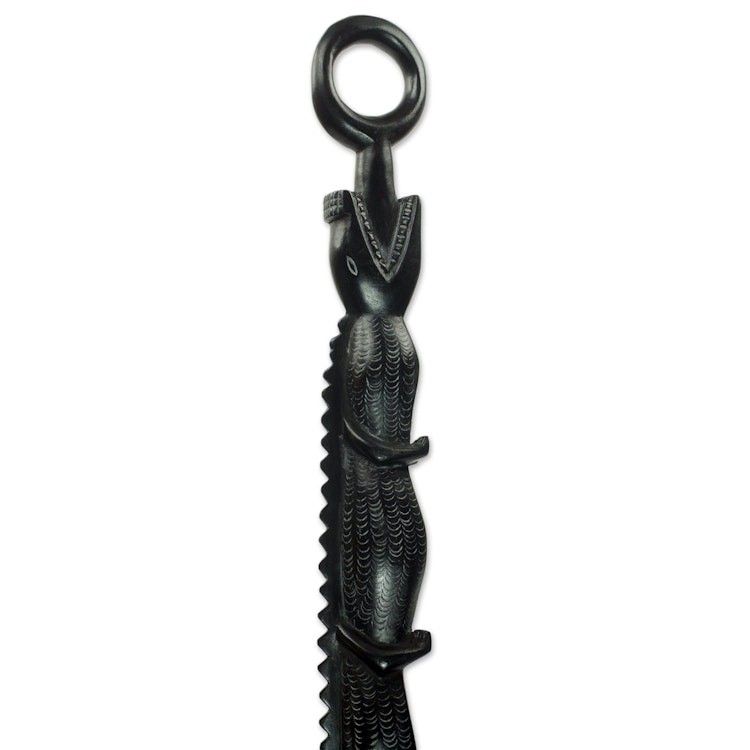 Decorative Africa Walking Stick Carved by Hand as Crocodile 'Fierce Denkyem' Item ID: 2671803594