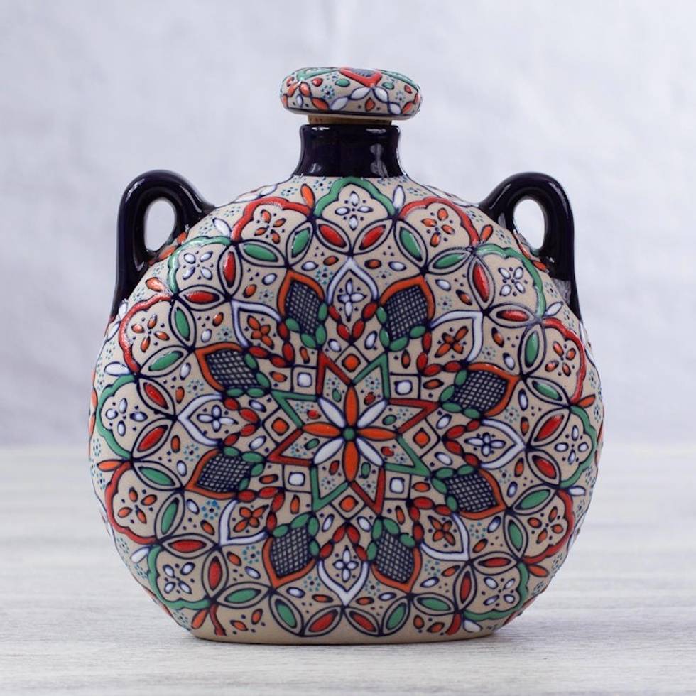 Decorative Ceramic Flask Hand Crafted in Mexico 'Guanajuato Mandala' Item ID: 2669897718