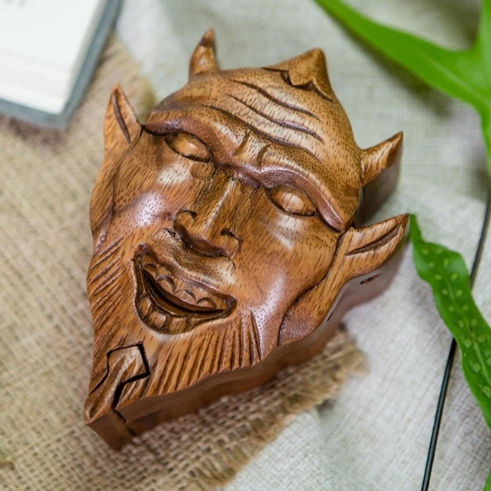 Decorative Suar Wood Puzzle Box from Bali 'Dangerous Devil' Item ID: 2671747400