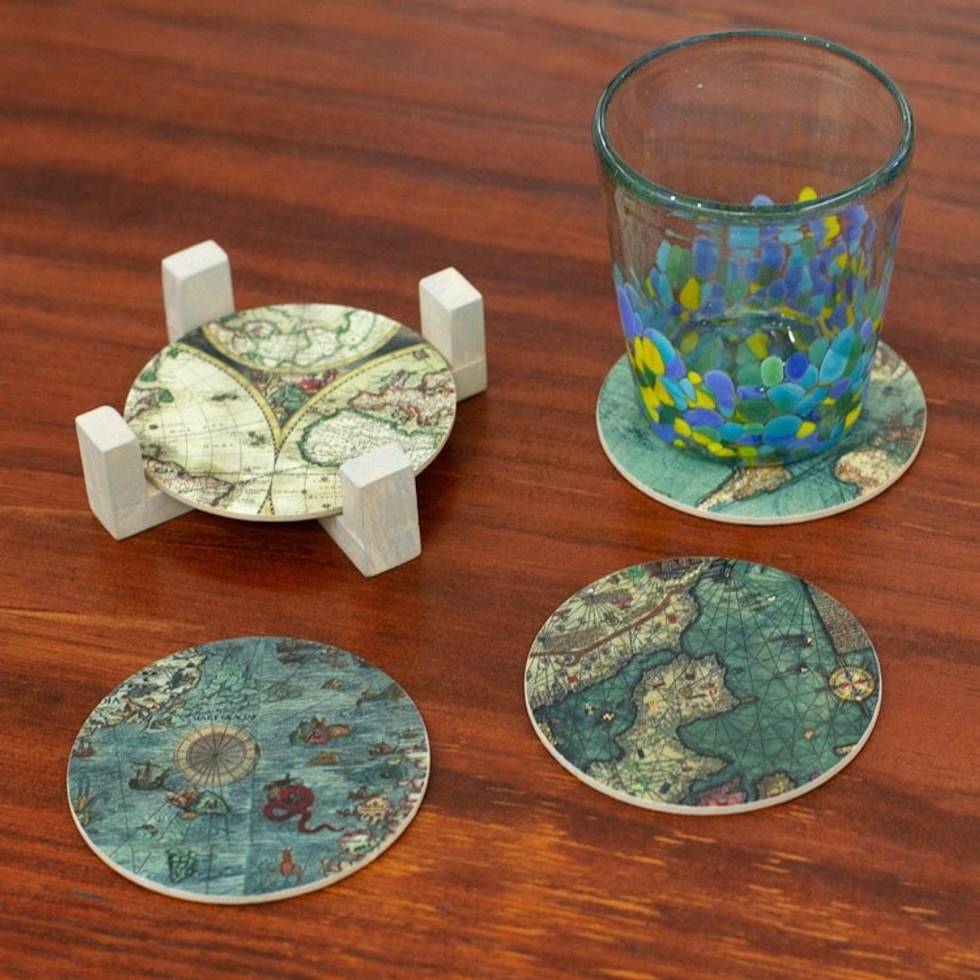 Decoupage Coasters and Holder with Africa Maps Set of 4 'Old Africa' Item ID: 2671808539