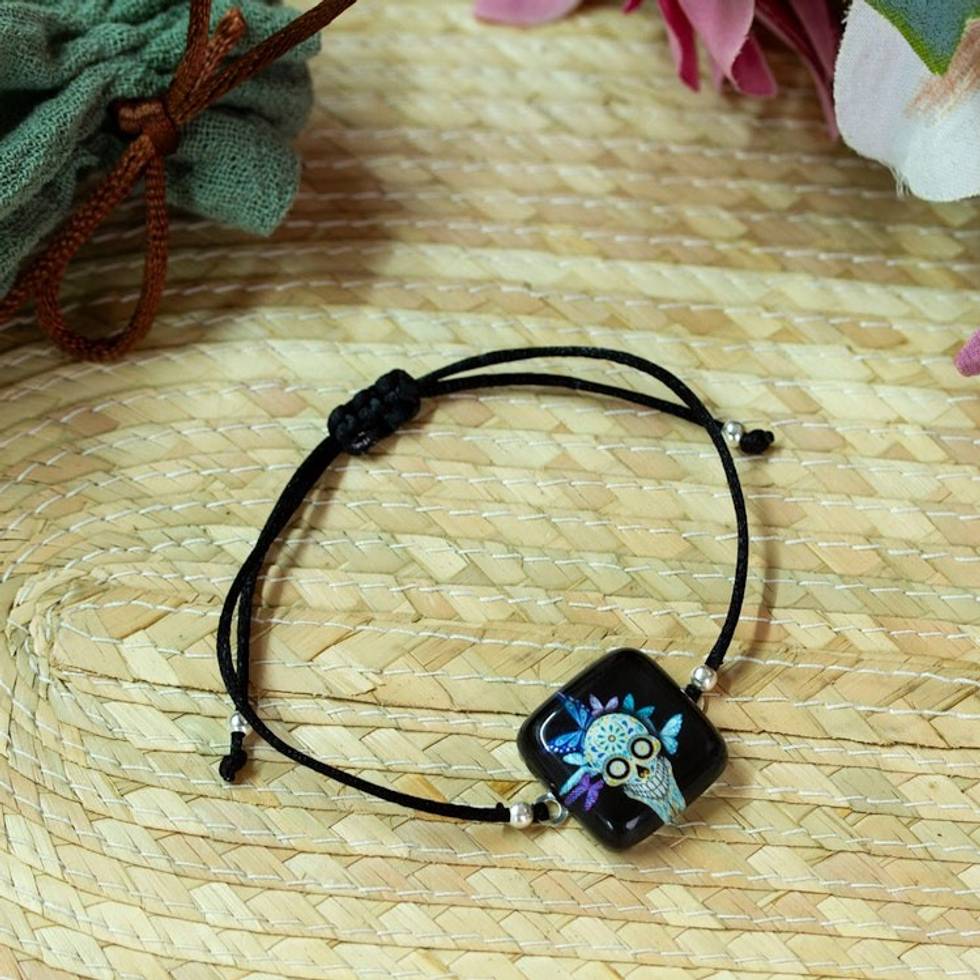 Decoupage on Glass Bracelet with Catrina-Themed Pendant 'Butterfly Catrina' Item ID: 2671798497