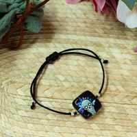 "This decoupage glass pendant bracelet brings to life Catrina, an icon of Mexico's Day of the Dead celebrations, adorned with intricate butterfly and floral motifs. With sterling silver beads and an adjustable black silk cord, artisans Yareth and Daniel's craftsmanship shines through in every detail, making it a captivating accessory."