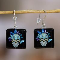 Decoupage on Glass Catrina Butterfly-Themed Dangle Earrings 'Butterfly Catrina' Item ID: 2671798641