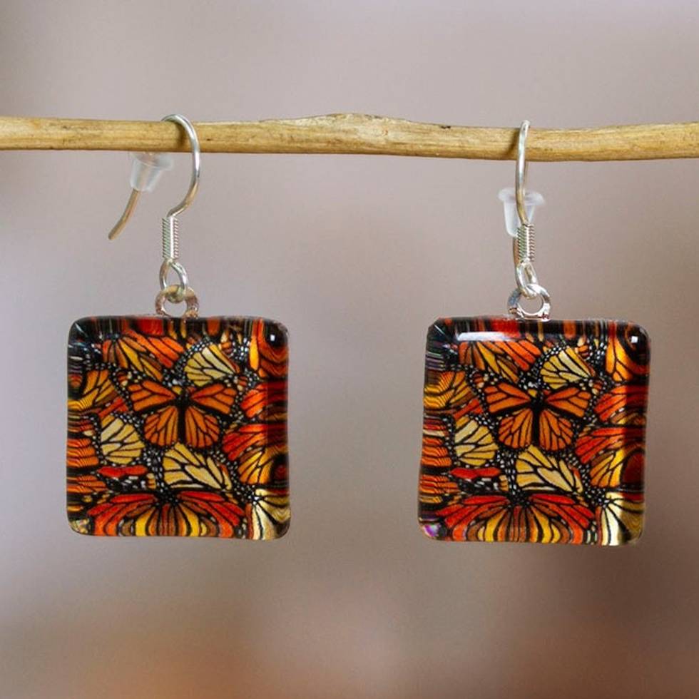 Decoupage on Glass Monarch Butterfly Dangle Earrings 'Magical Monarch' Item ID: 2671652016