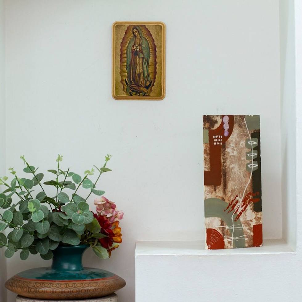 Decoupage on Pinewood Wall Plaque of Our Lady of Guadalupe 'Our Lady of Tepeyac' Item ID: 2671800671