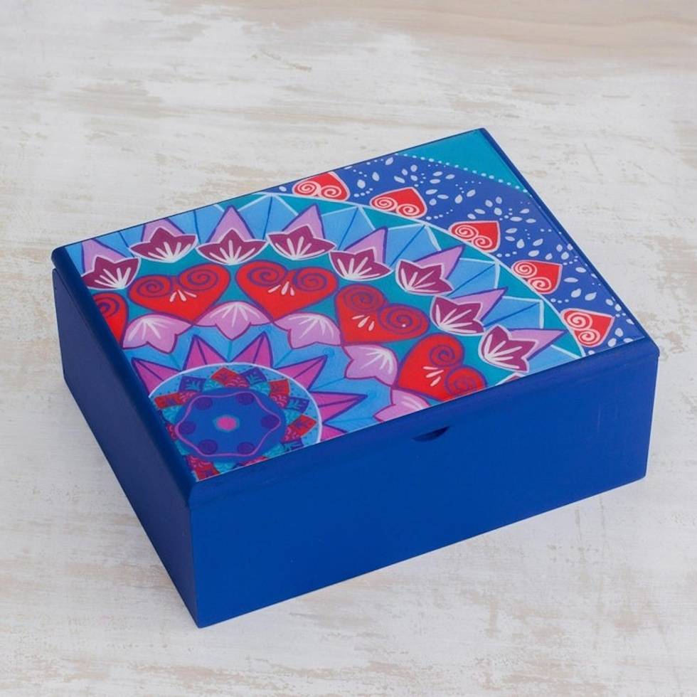 Decoupage Wood Tea Box in Blue from Costa Rica 'Blue Delight' Item ID: 2671777634