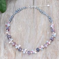 Delicate Rhodonite Cultured Pearl and Quartz Beaded Necklace 'Autumn Rose' Item ID: 2669926212