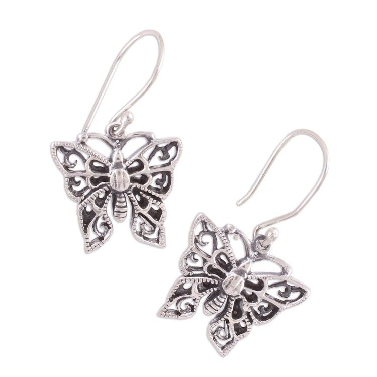 Delicate Sterling Silver Butterfly Dangle Earrings 'Jali Butterfly' Item ID: 2671790618