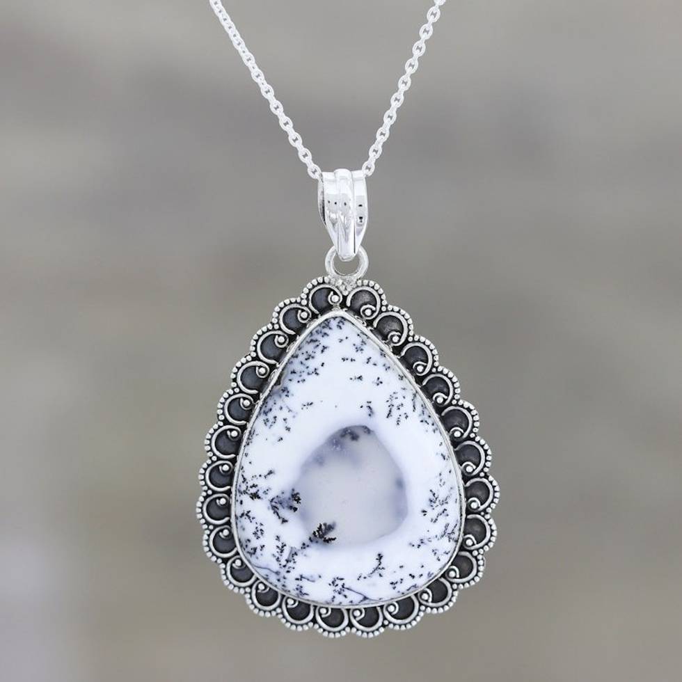 Dendritic Opal and Sterling Silver Pendant Necklace 'Gathering Storm' Item ID: 2669924186