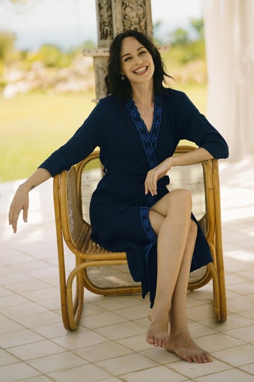 Diamond Embroidered Cotton Robe in Midnight from Thailand 'Midnight Relaxation' Item ID: 2669897593