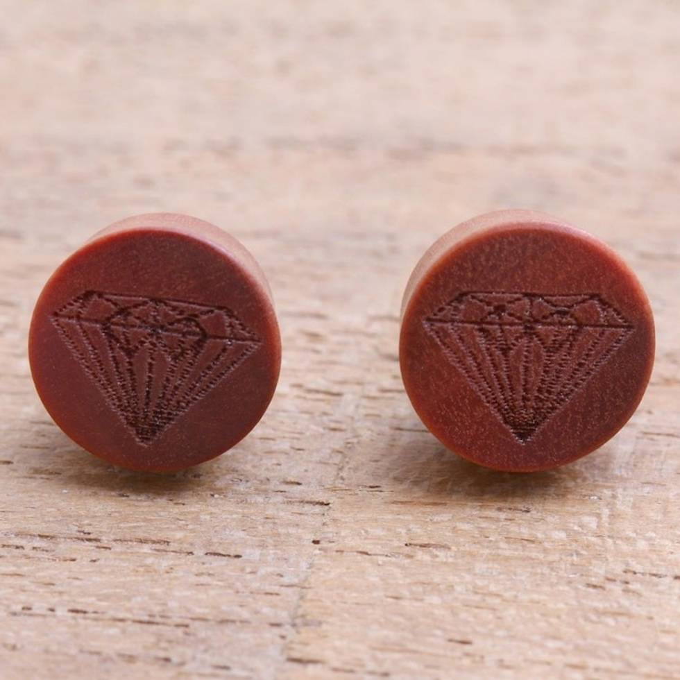 Diamond Motif Sawo Wood Stud Earrings from Bali 'Kuta Diamonds' Item ID: 2671735895
