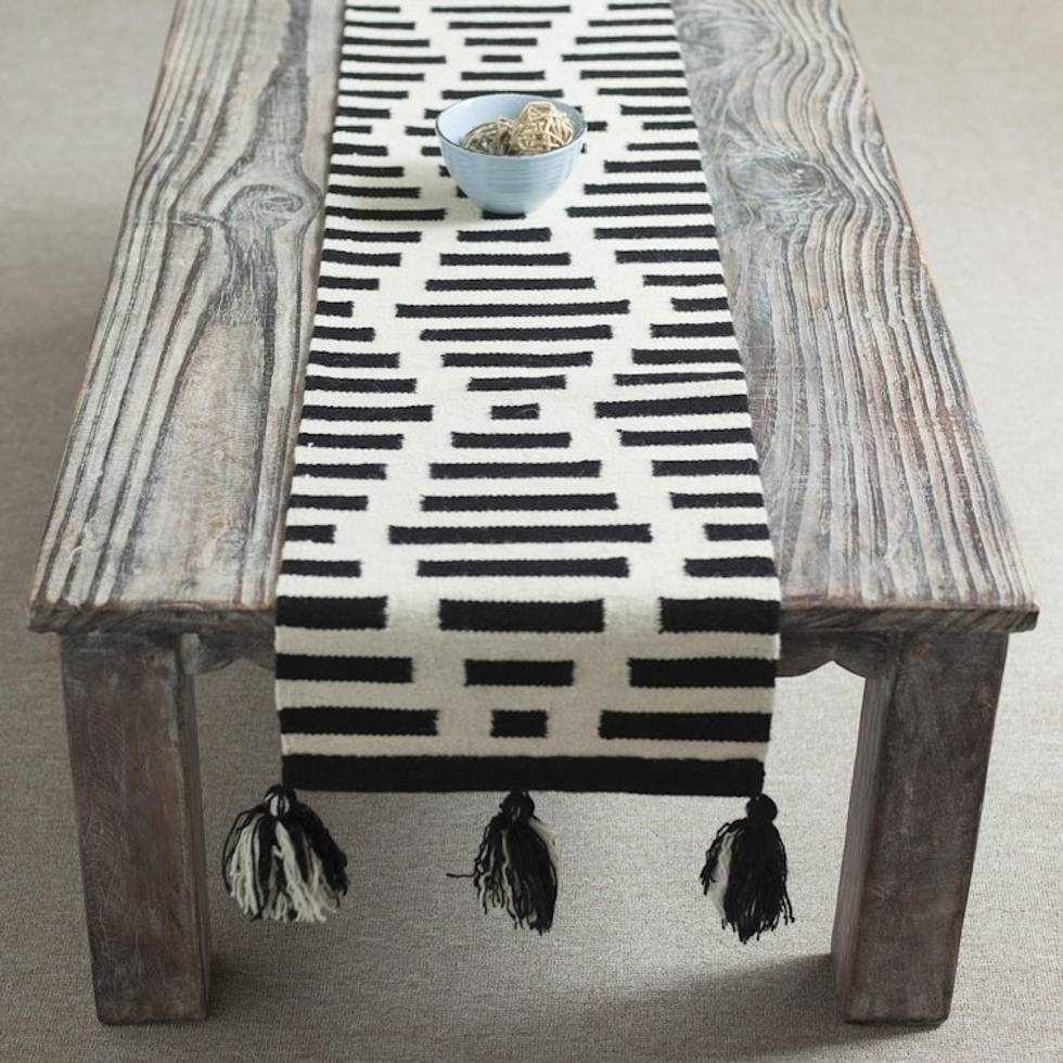 Diamond Motif Wool Table Runner in Black and Antique White 'Diamond Illusion' Item ID: 2671400068