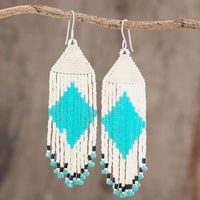 Diamond Pattern Glass Beaded Waterfall Earrings 'Ocean Diamonds' Item ID: 2671777254