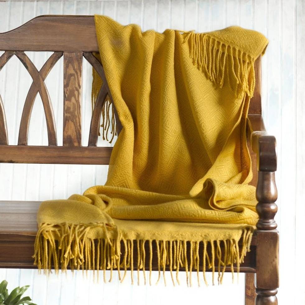 Diamond-Patterned Acrylic Blend Throw Blanket 'Diamond Mine in Gold' Item ID: 2671820073