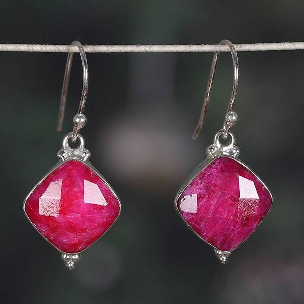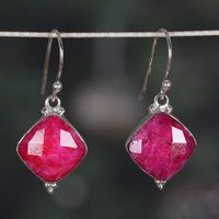 Diamond-Shaped 33-Carat Faceted Pink Agate Dangle Earrings 'Dulcet Kiss' Item ID: 2676664378