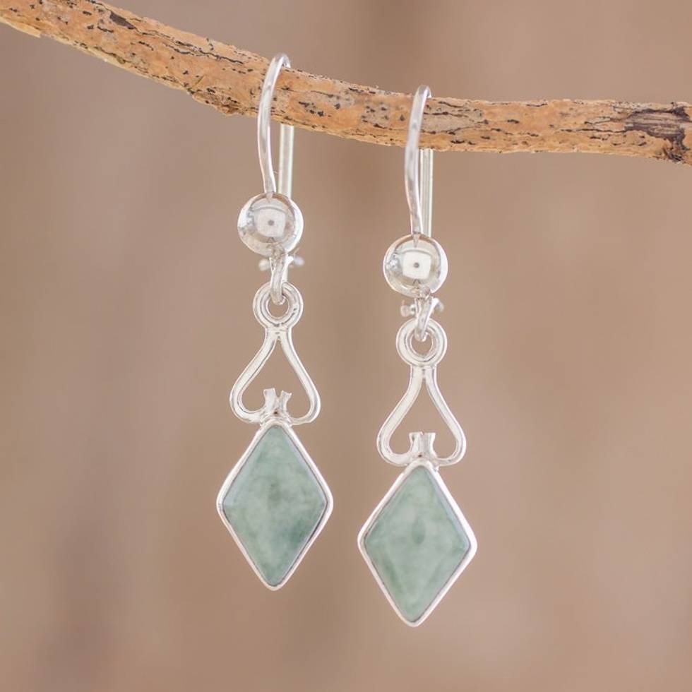 Diamond-Shaped Apple Green Jade Earrings from Guatemala 'Marvelous Apple Green Diamonds' Item ID: 2671777895