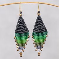 Diamond-Shaped Hand-Knotted Dangle Earrings in Green 'Boho Diamonds in Green' Item ID: 2669930333