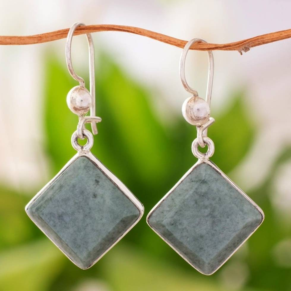 Diamond Shaped Light Green Jade Earrings in Sterling Silver 'Light Green Lake' Item ID: 2671779286