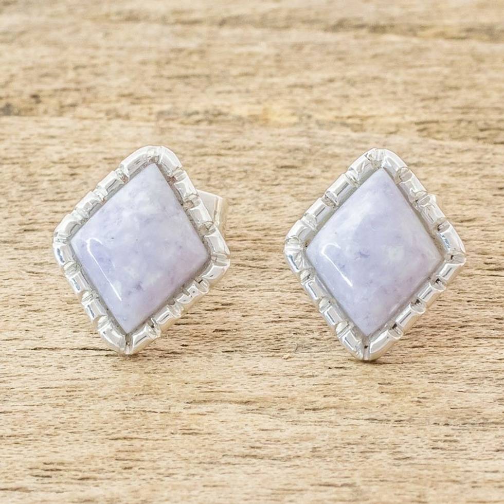 Diamond-Shaped Lilac Jade Stud Earrings 'Traditional Textures' Item ID: 2669934179