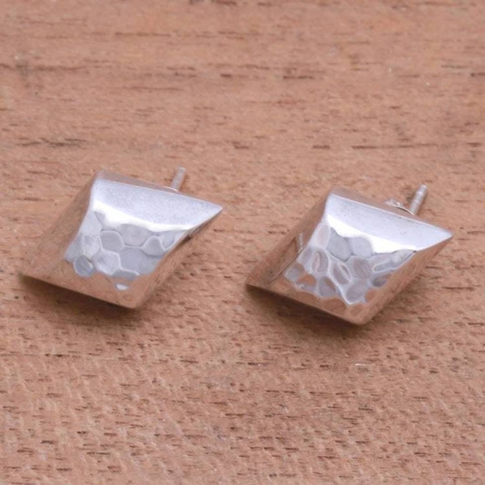 Diamond-Shaped Sterling Silver Button Earrings from Bali 'Hammered Diamonds' Item ID: 2676659071
