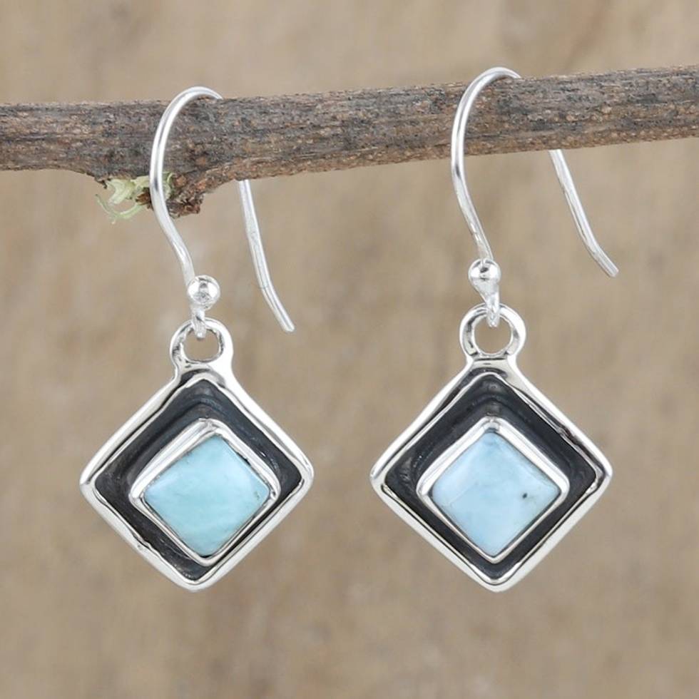 Diamond-Shaped Sterling Silver Larimar Dangle Earrings 'Peaceful Blue' Item ID: 2671787087