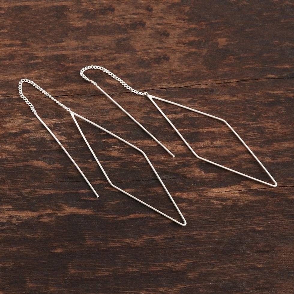 Diamond Shaped Sterling Silver Threader Earrings 'Singular Diamond' Item ID: 2671789278