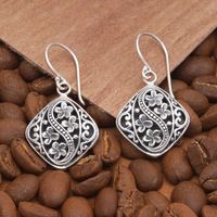 Diamond-Shaped Traditional Floral Dangle Earrings from Bali 'Frangipani Spirits' Item ID: 2669921491