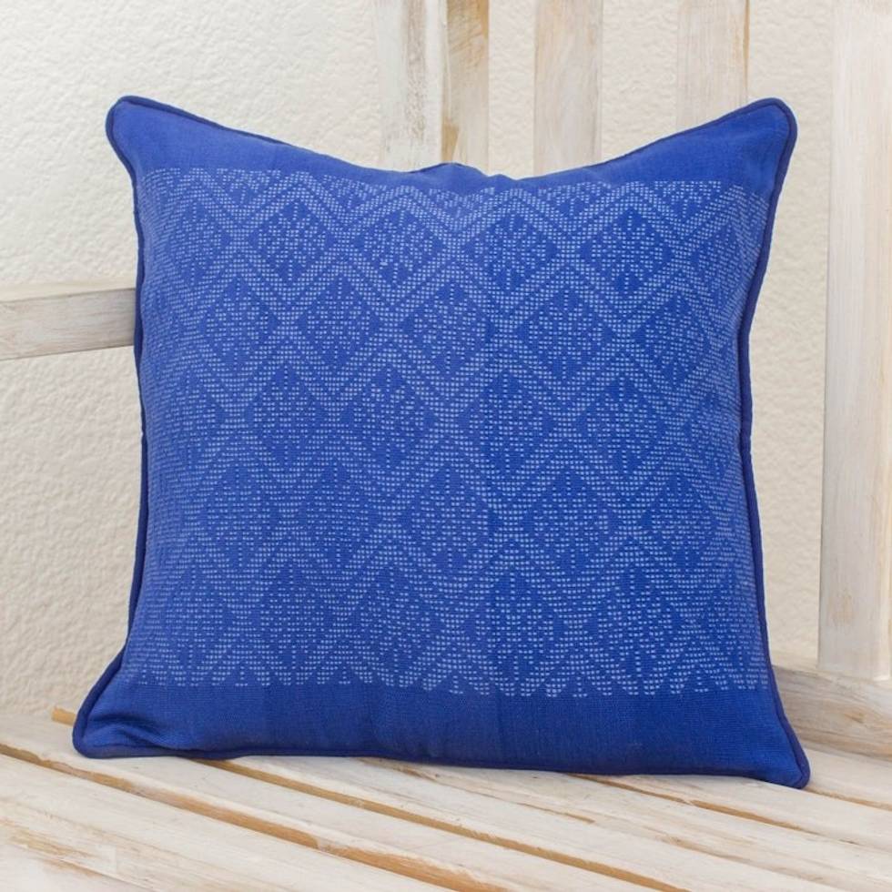 Diamond Texture Maya Handwoven Blue Cotton Cushion Cover 'Sky Diamonds' Item ID: 2671779759