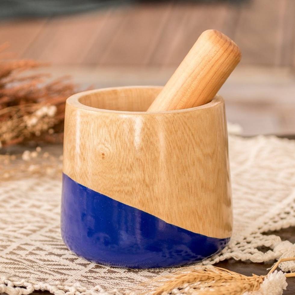 Dip Painted Hand Carved Wood Mortar 'Spicy Blue' Item ID: 2671626871