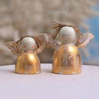 Distressed Gold-Tone Wood Angel Holiday Decor Pair 'Happy Angels' Item ID: 2671744733