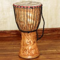 Djembe Drum with African Nature Carvings 'Peace Drum' Item ID: 2671800838