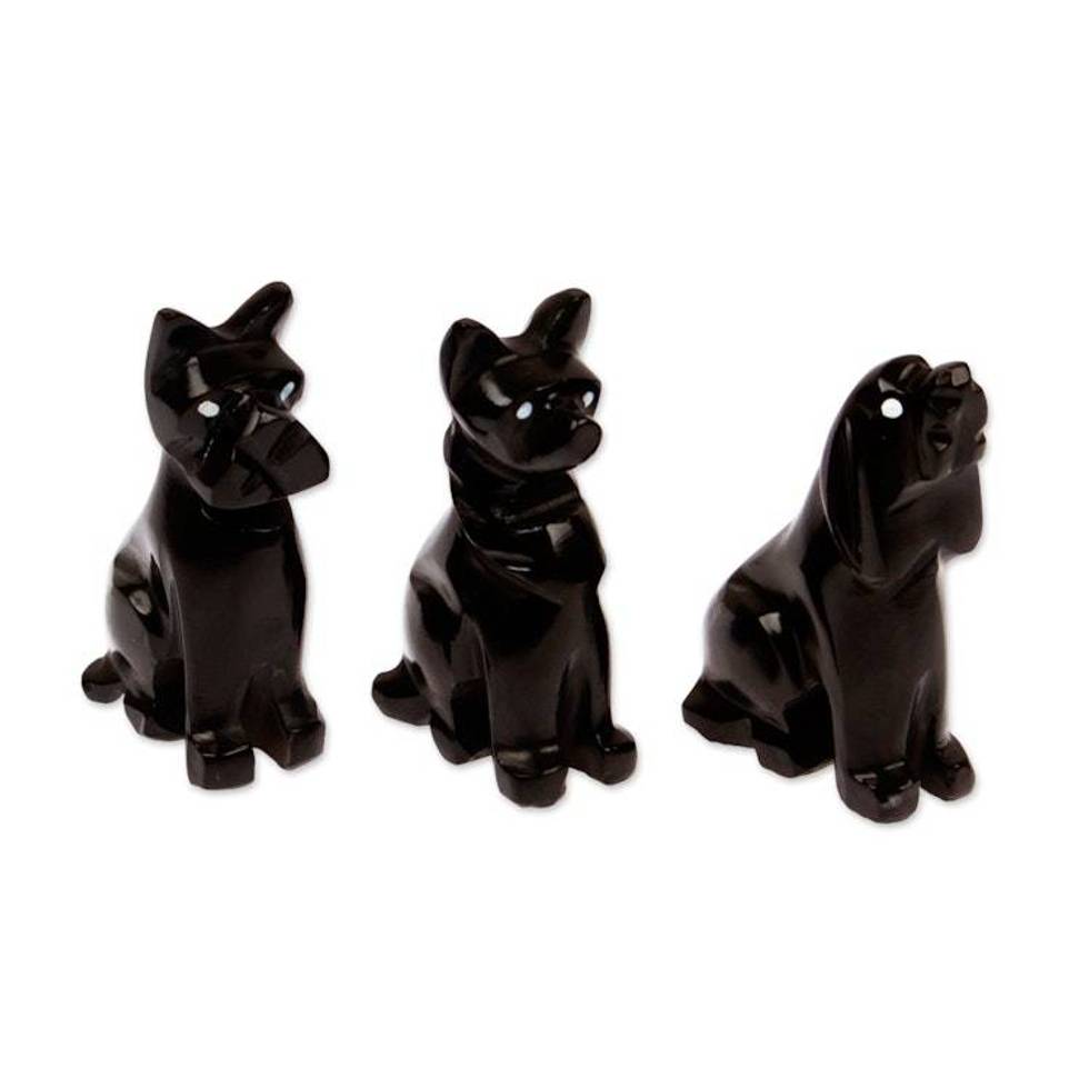 Dog-Themed 3-Piece Marble Figurine Set in a Dark Palette 'Tails at Night' Item ID: 2676647187