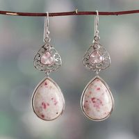 Dolomite Rose Quartz and White Topaz Heart Dangle Earrings 'Passionate Allure' Item ID: 2671625445