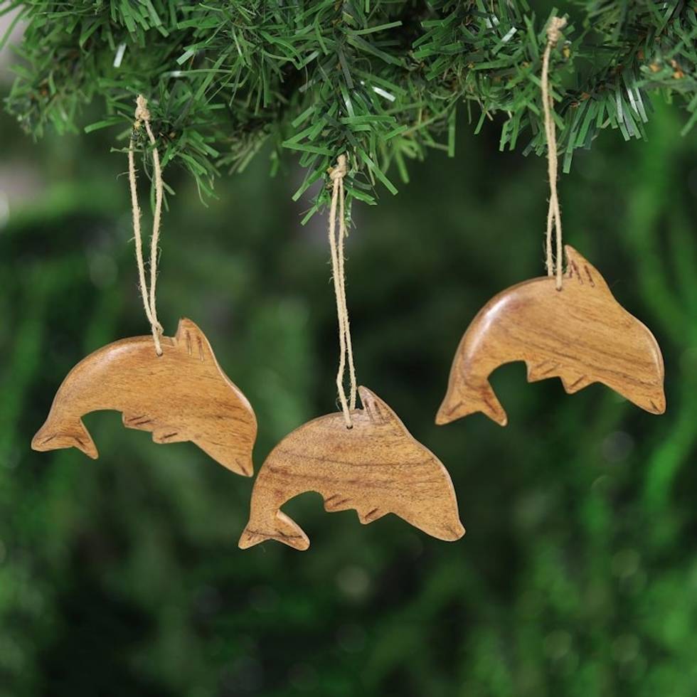 Dolphin-Themed Wood Ornaments from India Set of 3 'Happy Dolphins' Item ID: 2671618798