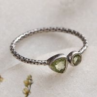 Dot-Accented Sterling Silver and Natural Peridot Band Ring 'Spring Green Duo' Item ID: 2671782174