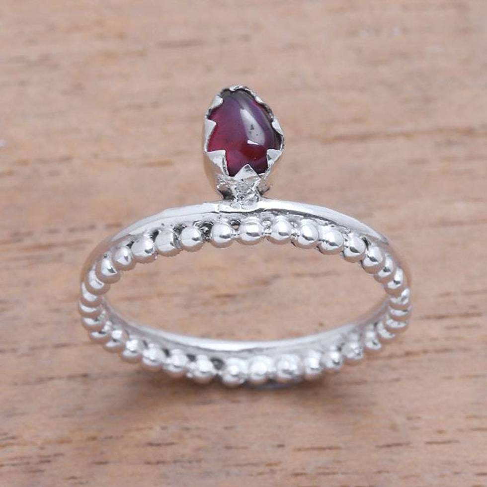 Dot Motif Garnet Band Ring Crafted in Bali 'Lovely Serenity' Item ID: 2676667035