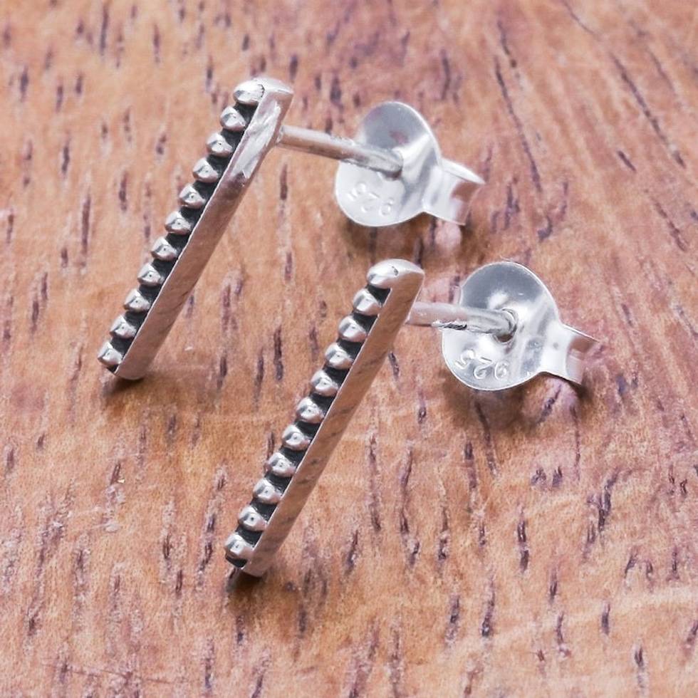Dot Pattern Sterling Silver Drop Earrings from Thailand 'Tiny Dots' Item ID: 2671798669