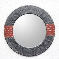 Dotted Wood and Aluminum Round Wall Mirror from Ghana 'Ahoufe Dots' Item ID: 2671806334