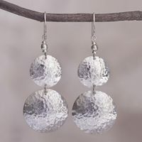 Double Disk Sterling Silver Dangle Earrings from Peru 'Luminous Sentries' Item ID: 2671690512