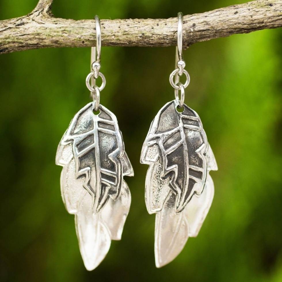 Double Exotic Leaf Earrings Handmade in 925 Sterling Silver 'Exotic Leaf Shadows' Item ID: 2671640820