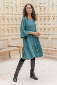Double-Gauze Cotton Tunic Dress in a Teal Hue from Thailand 'Teal Trends' Item ID: 2669897247