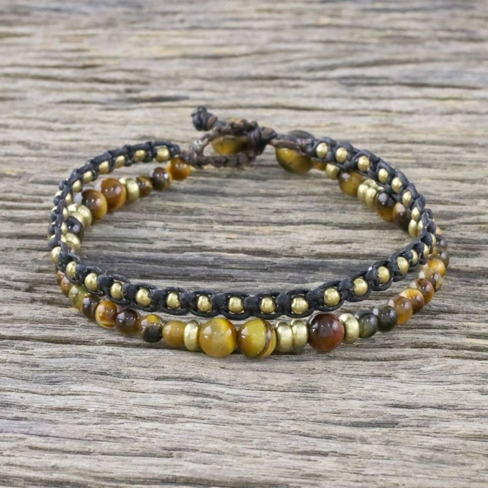 Double Strand Tiger's Eye Beaded Macrame Bracelet 'Evermore' Item ID: 2671801252