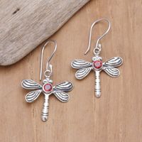 Dragonfly Dangle Earrings with Natural Garnet Stones 'Passionate Change' Item ID: 2671763198