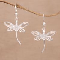 Dragonfly Silver Filigree Dangle Earrings from Bali 'Lively Dragonflies' Item ID: 2671732975
