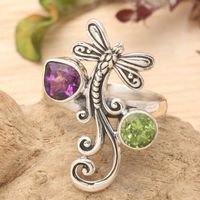 Dragonfly-Themed 1-Carat Peridot and Amethyst Cocktail Ring 'Fantastic Dragonfly' Item ID: 2671765388