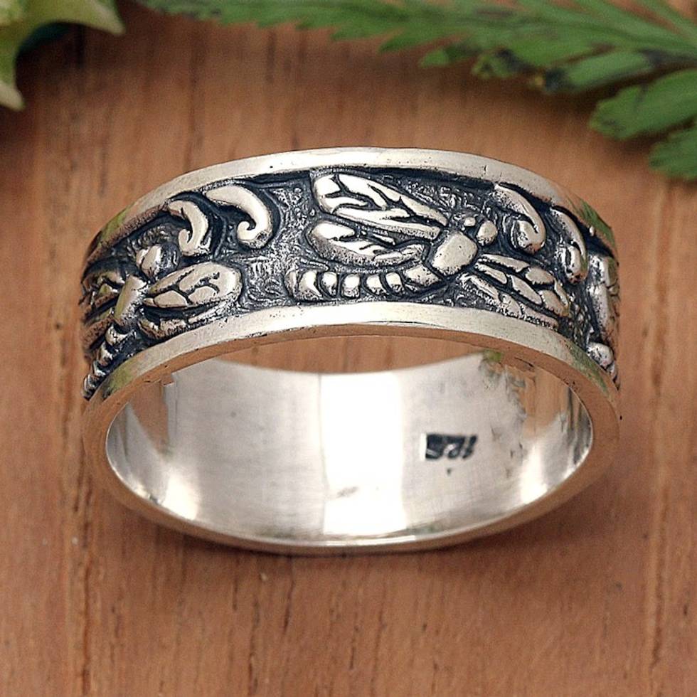 Dragonfly-Themed Polished Sterling Silver Band Ring 'Dragonfly Legend' Item ID: 2671667490