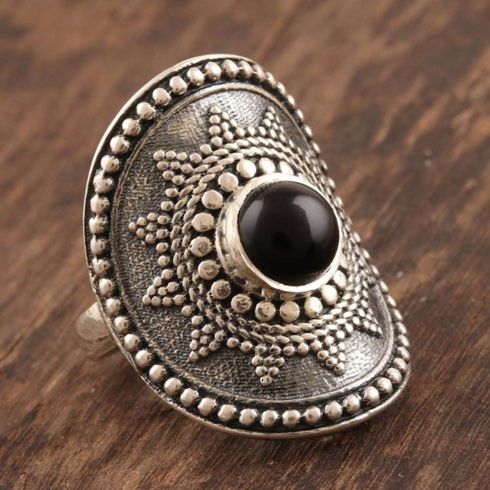 Dramatic Onyx and Sterling Silver Cocktail Ring 'Royal Rawa' Item ID: 2671789393